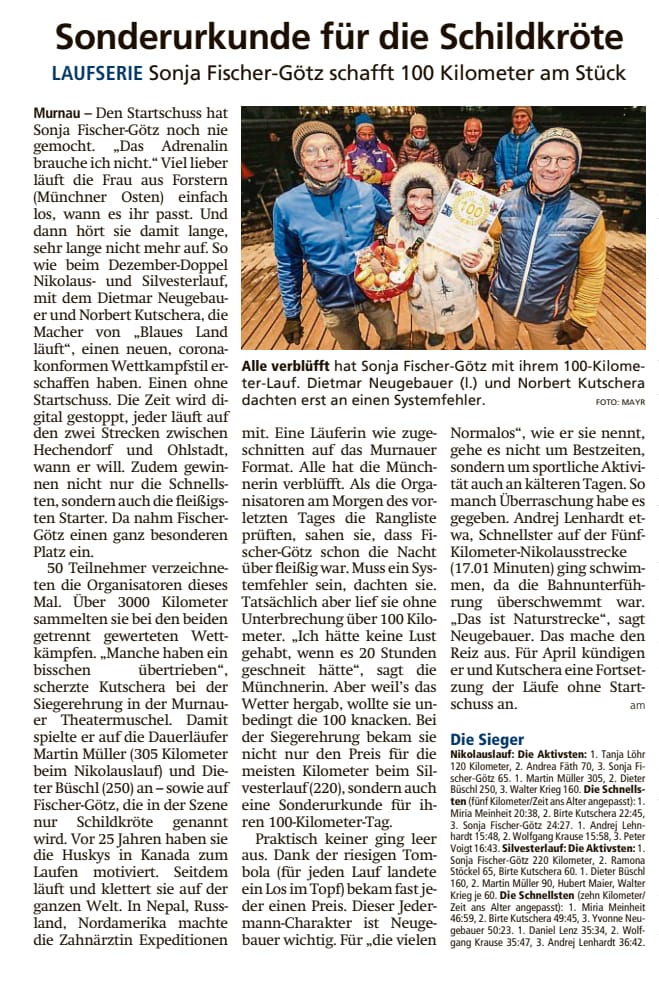 Silvesterlauf, Sonderehrung für einen Ultralauf über 100km